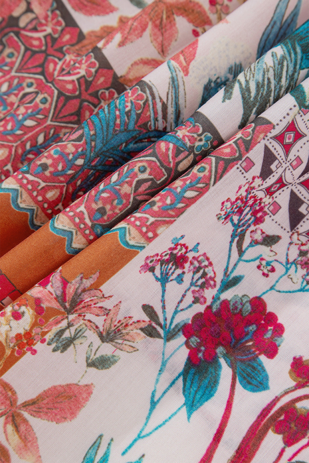 Patchwork Printed Notched Flounce Sleeve Shirt
